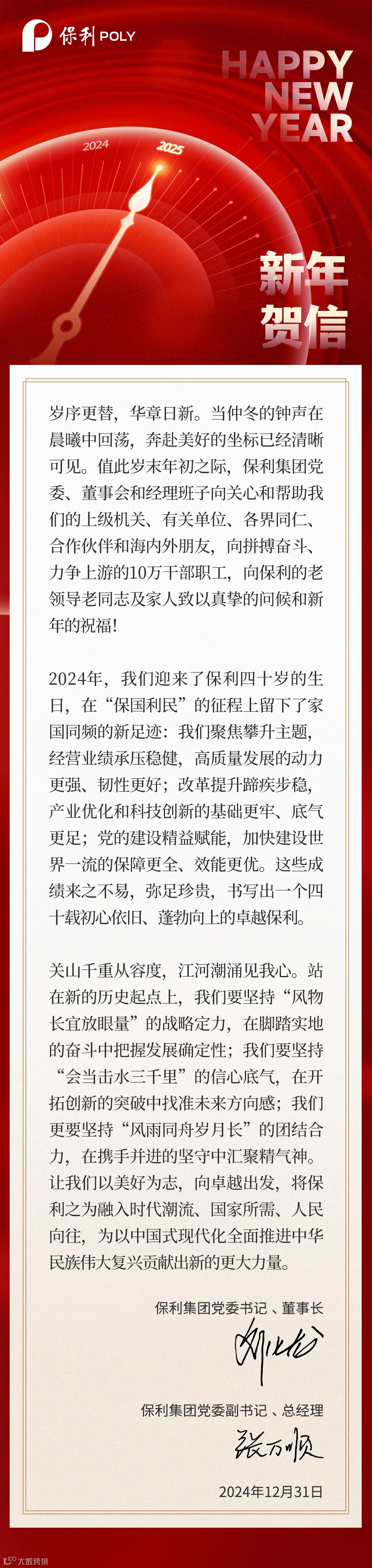 保利集团2025年新年贺信