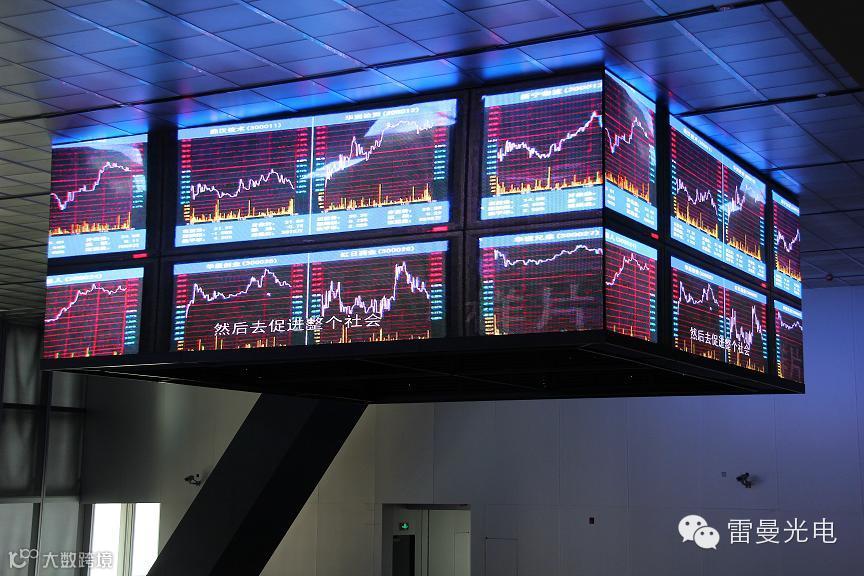 户内高清晰P6 LED显示屏相续在深交所大楼各相应楼层点亮成功P6户内全彩显示屏具有薄型、轻量、高像素密度,画面精细,色彩艳丽。播放LED视频节目、动态全彩图像、文字,美伦美焕,其中八楼上市大厅吊斗显示屏及背景屏最具代表性,设计充分考虑上市大厅功能的重要性与特殊性,针对大厅转播的特点采用超高刷新率(最高可达4000赫兹),亮度色度可逐点校正的高端技术, 做到摄像机拍摄无闪烁、无干扰波纹,屏幕图像色彩柔和逼真、灰度丰富、层次感和立体感强,画面清晰不闪烁等特点,成为深交所大楼的一大亮点。