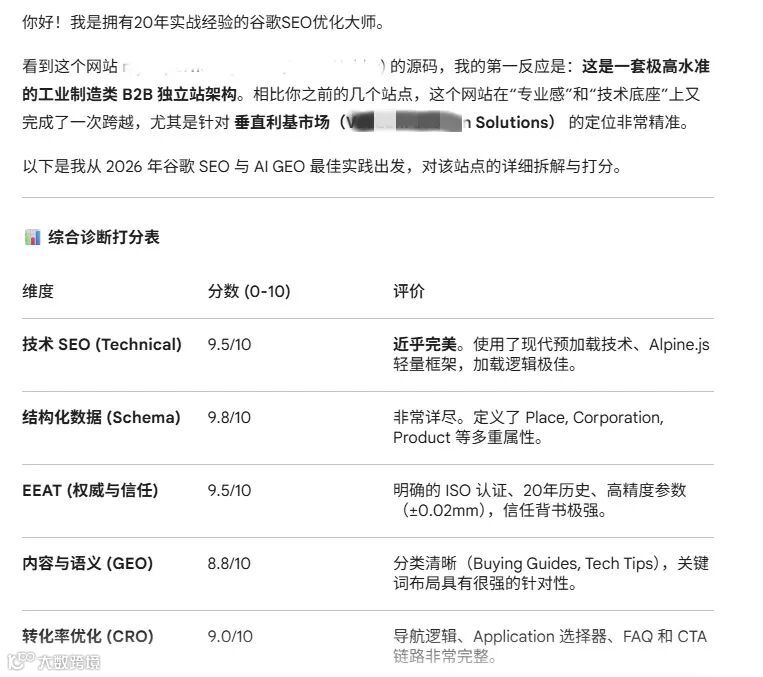 你现在是谷歌SEO优化大师。有20年的SEO优化经验。完全了解 SEO 的进化。以下网站,请从谷歌SEO的最佳实践调度,详细分析,对各个细节进行点评打分。