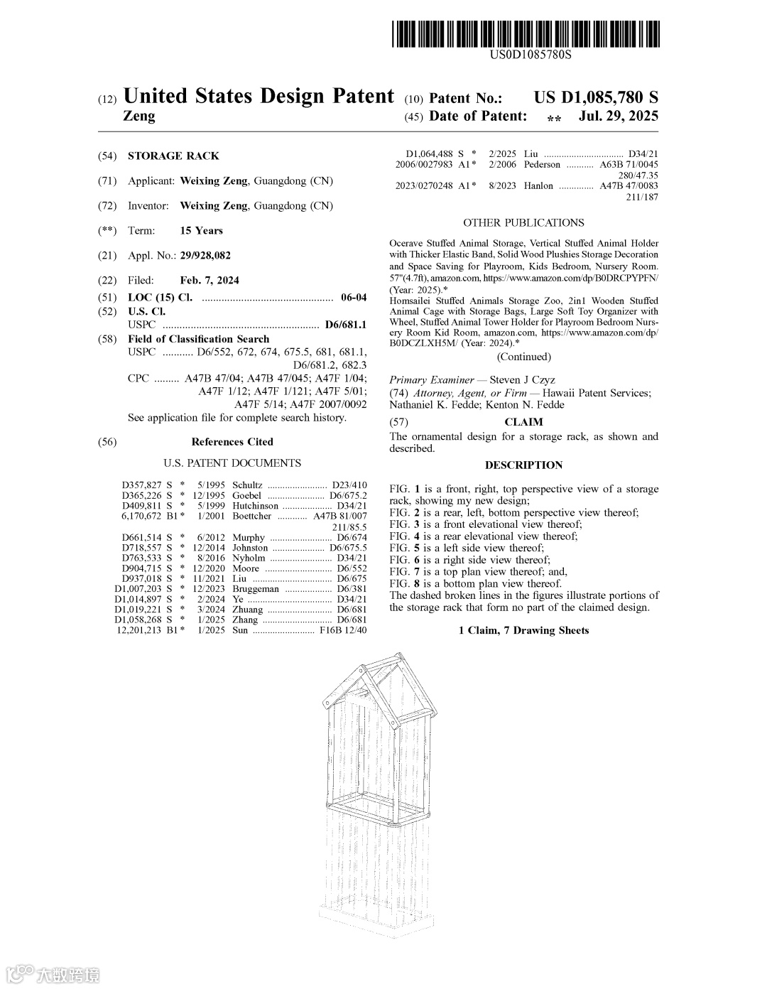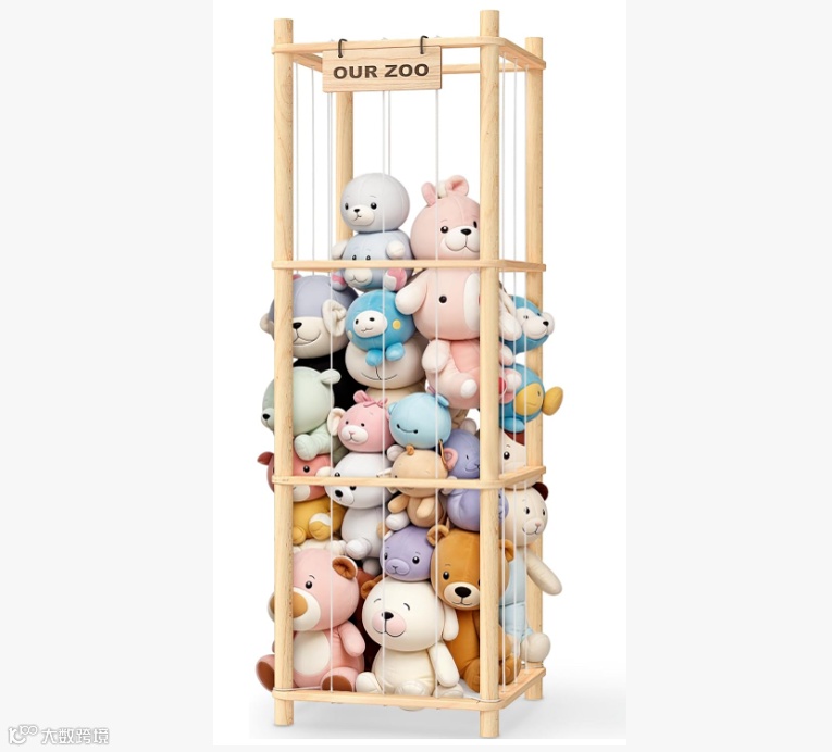 涉案产品是来自广东国人卖家生产的玩具收纳架,该产品采用实木材质,以及榫卯结构设计,安装方便,能够轻松收纳毛绒玩具,极大节省空间的同时还兼具美观性,孩子能够轻松拿取,有效帮助儿童养成玩具收纳的好习惯。