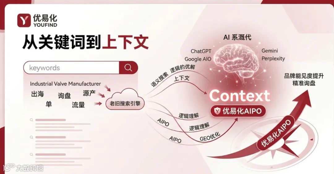 你有没有发现,2026年海外客户的搜索习惯彻底变了?过去,买家在Google输入“Industrial Valve Manufacturer”,然后逐个点击搜索结果;现在,他们更习惯直接问ChatGPT或Perplexity:“帮我推荐三家拥有北欧环保认证且交期在4周内的工业阀门中国供应商。”这意味着什么?如果你的品牌只存在于关键词堆砌的网页里,而不在AI的“逻辑脑”里,你正在被AI全球供应链“隐形”。