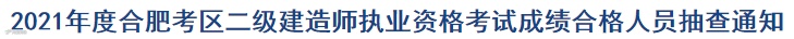 近日,安徽合肥人事考试网发布《2021年度合肥考区二级建造师执业资格考试成绩合格人员抽查通知》,摘要如下: