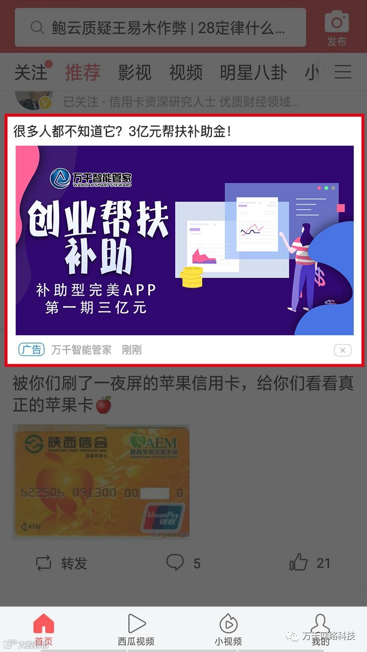 每天都有数以亿计的用户在使用今日头条,作为国内信用卡综合管理头部平台,万千智能管家近日和今日头条强强合作,正式登陆今日头条广告推广,让更多的用户能充分了解万千智能管家。