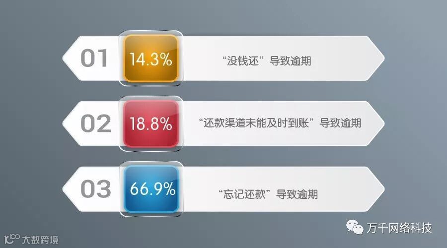 导致信用卡逾期的三个主要原因:“忘记还款”、“还款渠道导致未能及时到账”、以及“没钱还”。