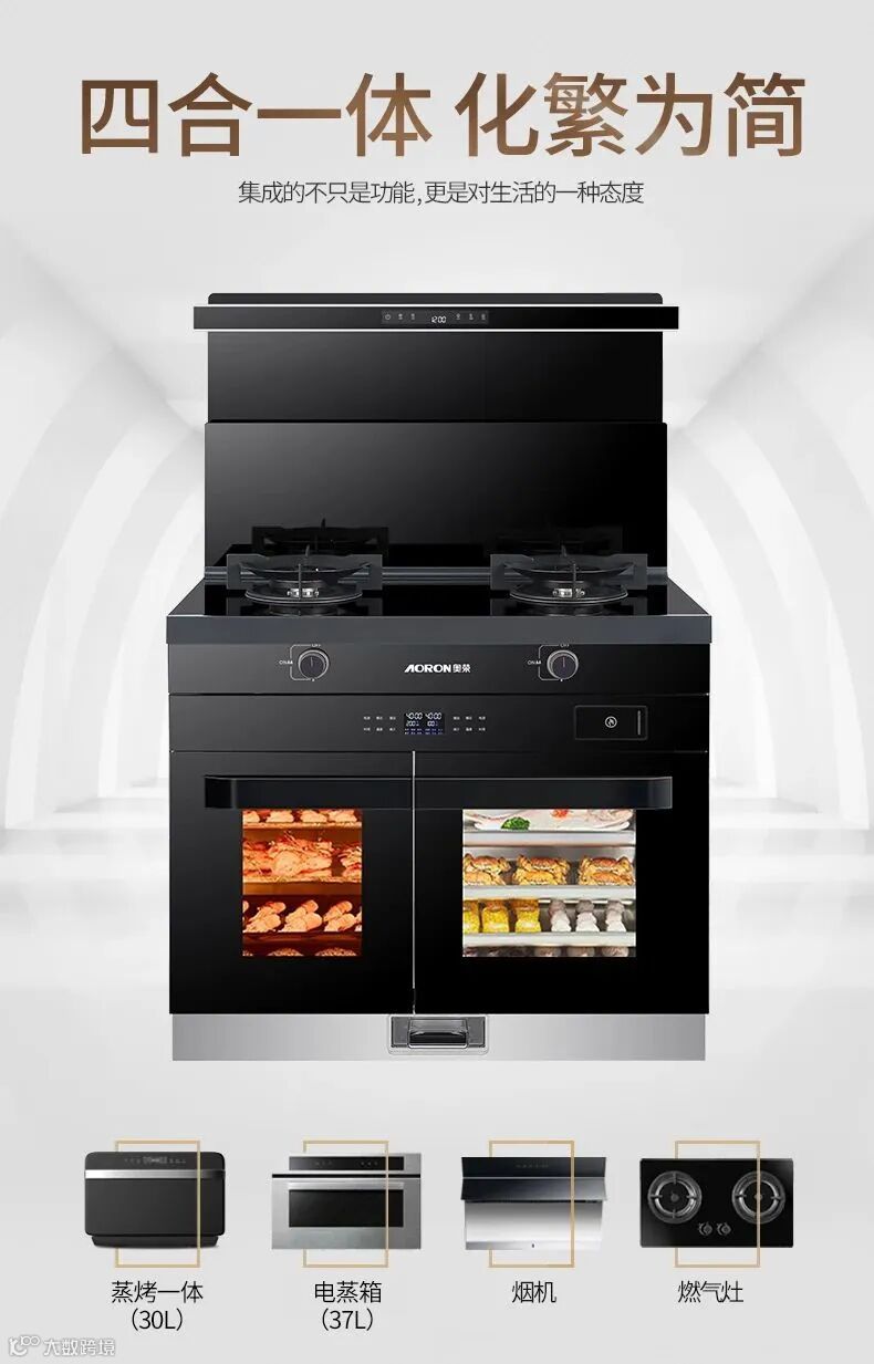 奥荣 [ M8 ] 系列的集成灶,四合一体,化简为繁!相当于购买了8件小电器:”油烟机、灶具、蒸箱、烤箱、空气炸锅、电炖锅、储物柜、保温置物台“融为一体,实现一台机器同时烹饪不同菜品的多重功能 ; 可以给你一些不一样的体验感!