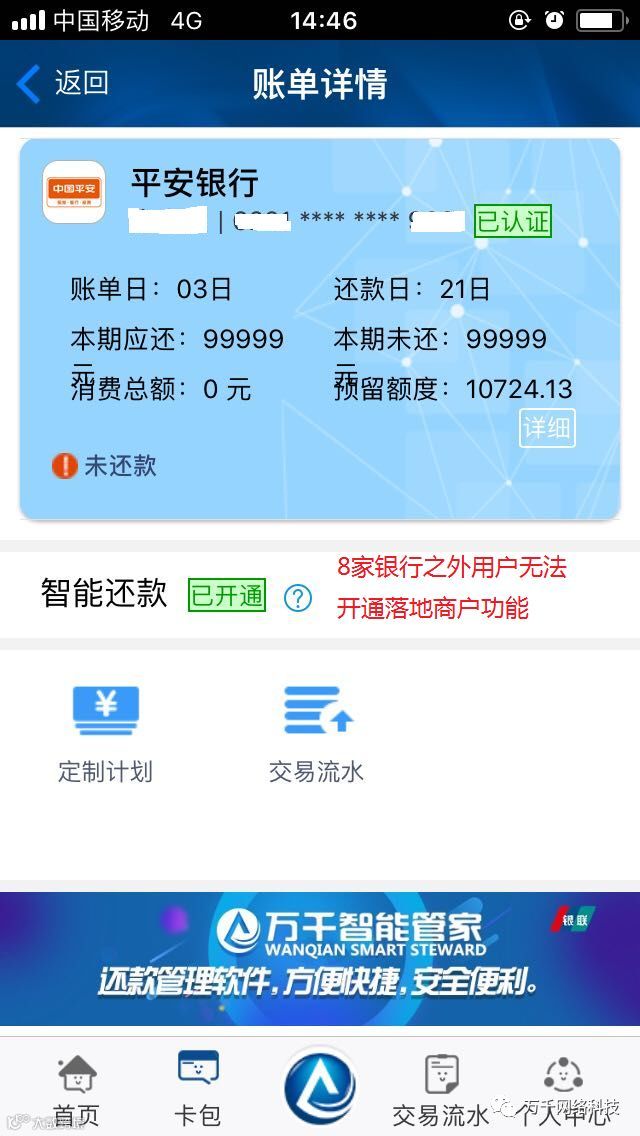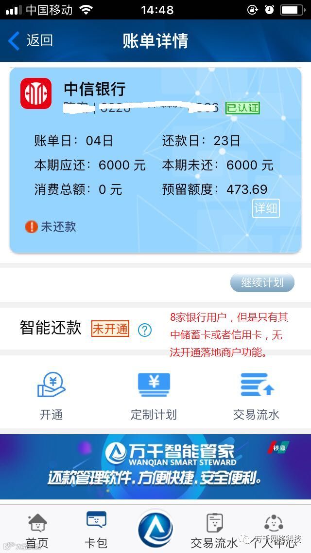 2.虽然是8家银行列表用户,但是只有信用卡或者储蓄卡(如有农行信用卡,但是没有对应8家银行的储蓄卡)这类用户无法使用落地商户功能,用户卡包的信用卡会显示“已认证,未开通”的提示,用户暂时无法使用落地商户功能。如果要使用落地商户功能,请自行办理支持银行的储蓄卡,但是可以正常使用原来智能还款服务。