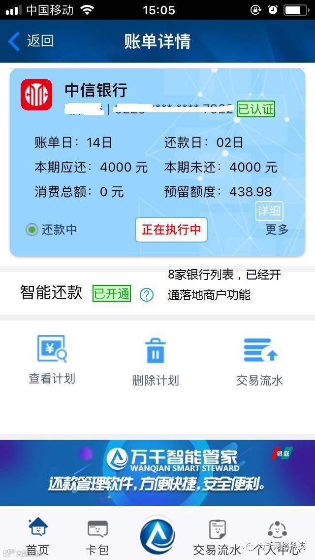 3.用户是8家银行之外的用户,按照正常流程完成办卡验证。用户卡包的信用卡会显示“已认证,智能还款 已开通”的提示,这类用户暂时无法使用落地商户,只能使用原来智能还款服务。