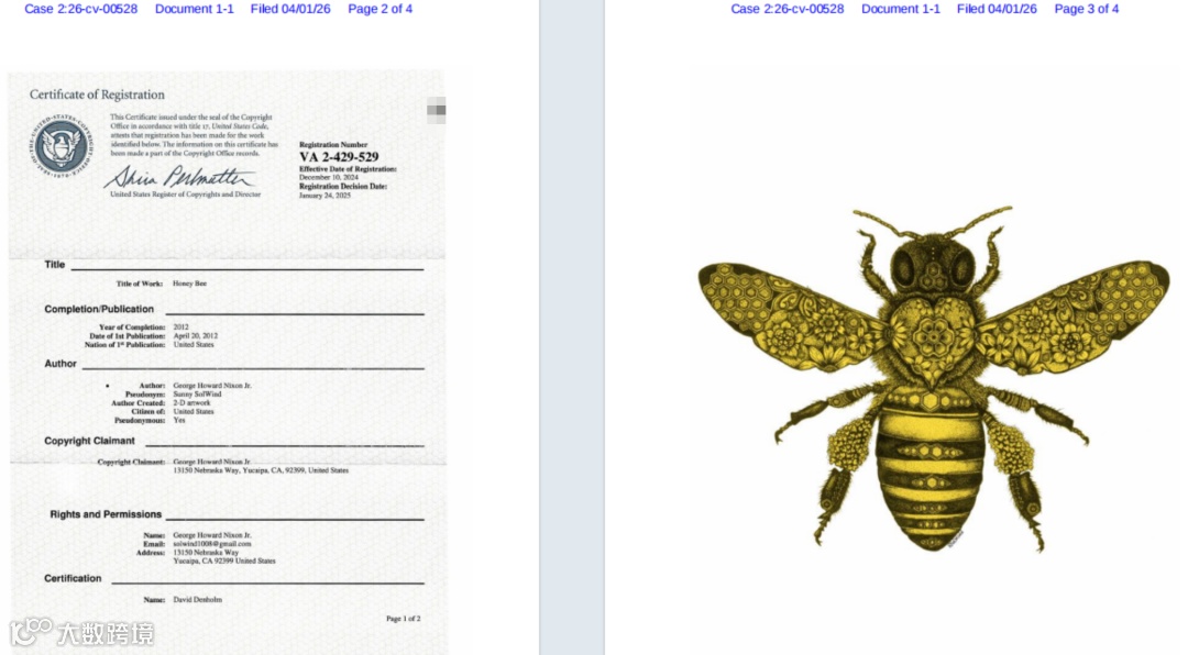 服饰、贴纸、墙面装饰及家居印花卖家需警惕!Keith与Ference律所联合在宾州发起版权维权(案号2026-cv-00528),代理艺术家George Howard Nixon, Jr.(艺名Sunny SolWind),针对其标志性灵性蜜蜂图案发起诉讼,锁定349家店铺,系今年以来罕见的大批量维权案。