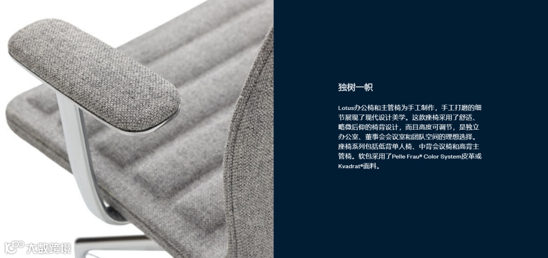 Poltrona Frau以其精湛的裁缝技艺,赢得世界各地顶级场所和世界顶级品牌的青睐。经典时尚的产品造型,经过设计师的独特创新,即使过了一个世纪之久,也不失时代感Poltrona Frau也因此被称为‘意大利家具行业的风向标';每个产品的生产过程都在Tolentino总部完成,确保100%意大利制造;每个生产阶段都经过严格的把控,只有经过最终的质量检测后,才可以被印上品牌logo。具有极高的收藏价值。