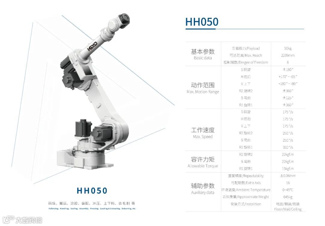 在实际制造场景中,企业的工厂环境五花八门,工业机器人因应用而生,必须具备配置灵活的能力。哈工现代机器人推出的工业机器人以六轴通用机器人为主,主推四款型号,