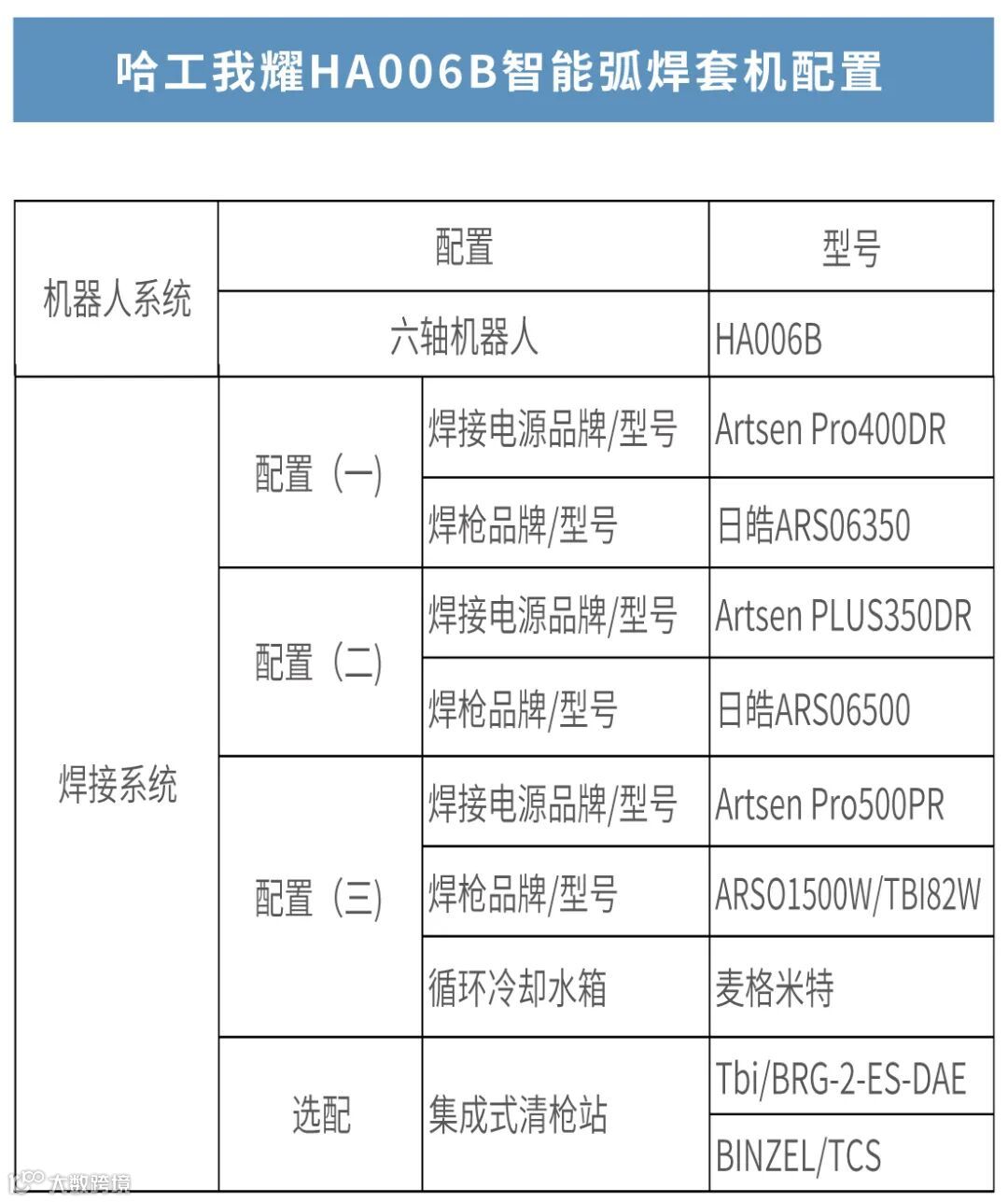 针对痛点,哈工智能旗下子公司哈工我耀推出一款智能弧焊套机,由哈工现代工业机器人HA006B、麦格米特焊机、日皓及TBI焊枪构成,具有速度快、精度高、工作范围大、可靠性强、灵活性高等特点,可稳定和提高焊接质量,缩短产品改型换代的准备周期,减少相应的设备投资。