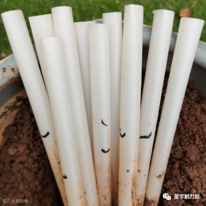 针对各种吸管的降解性能,我们将三种不同材质的吸管种在土里,模拟各种材质的吸管在自然条件下的堆肥降解情况,看看70天之后,它们分别发生了什么变化:
