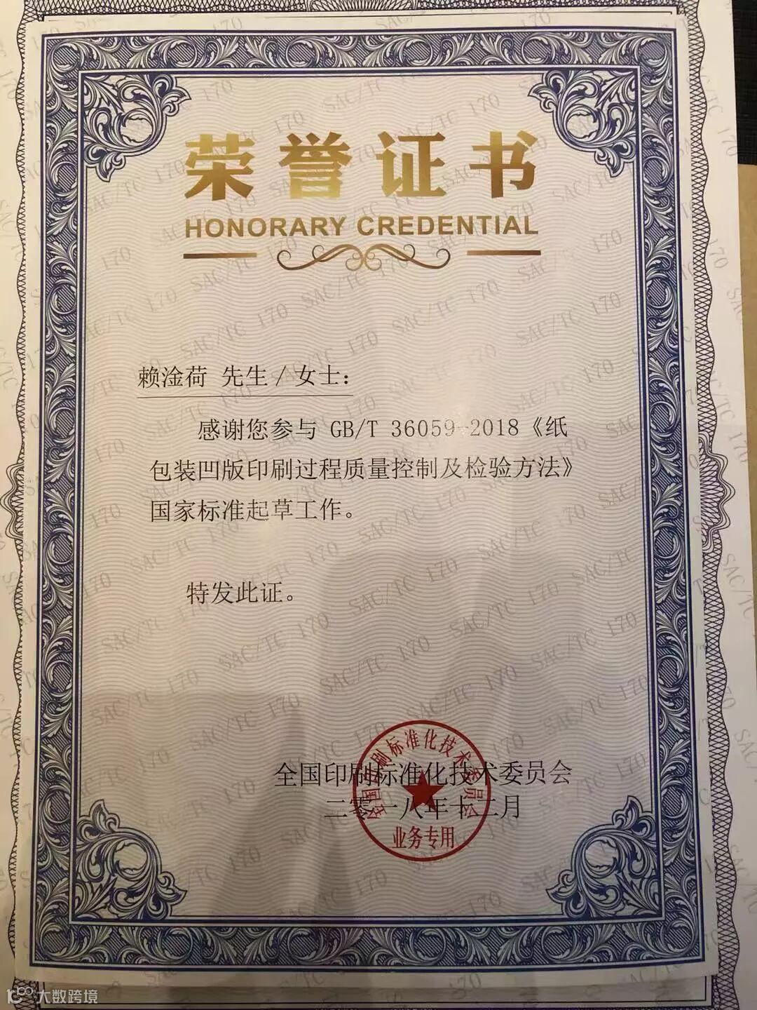 在全国印标准化技术委员会2018年的工作中,星宇分别参与了《纸包装凹版印刷过程质量控制及检验方法》、《精装书籍用水基胶粘剂粘接过程控制要求及检验方法》、《塑料软包装凹版印刷过程质量控制及检验方法》等3项国家标准的起草工作。