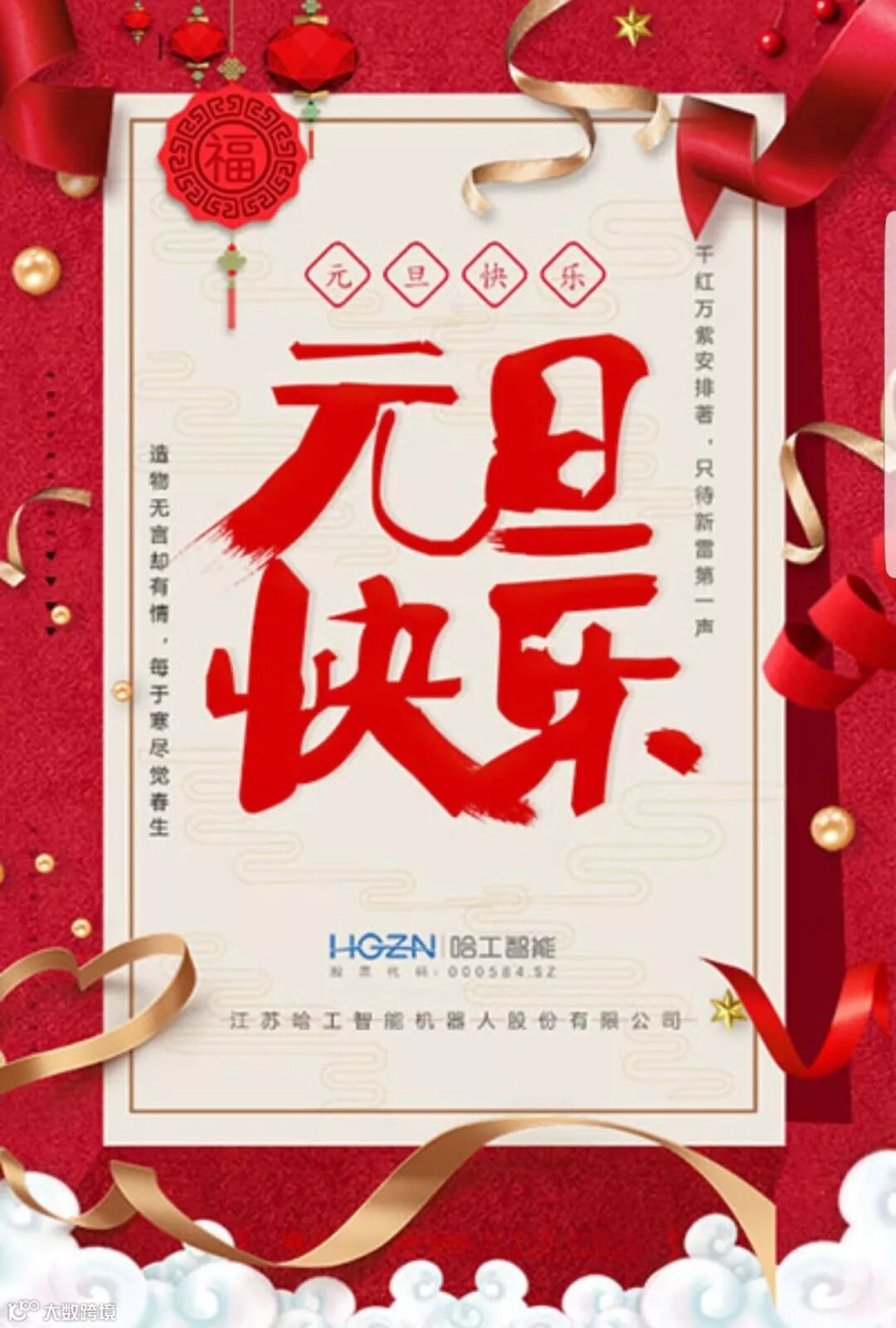 迈过了365个昼夜,做过了365场梦,付出了365滴辛劳,收获了365个幸福。新的序幕已经开启,哈工智能全体员工先祝各位元旦快乐,吉祥多多,如意加倍!好运时时有,事业步步顺,阖家幸福,诸事圆满~