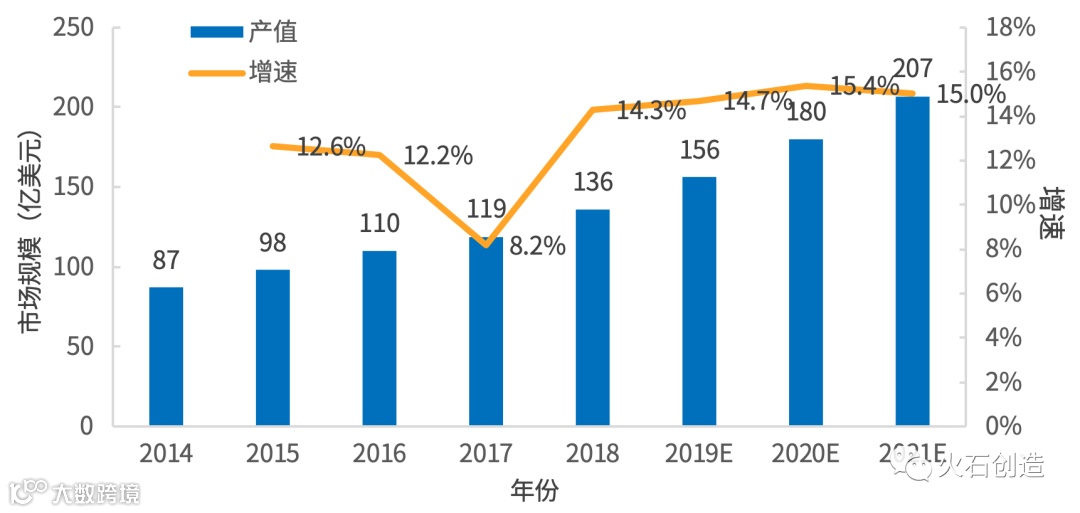近年来,全球的医疗机器人市场规模增长迅速,其中手术机器人规模最大,康复机器人增速最快,细分领域中外骨骼机器人将迎来爆发式的增长,训练机器人和仿生假肢机器人等也将以较高的增速增长。2021年,全球医疗机器人市场规模有望达到207亿美元。