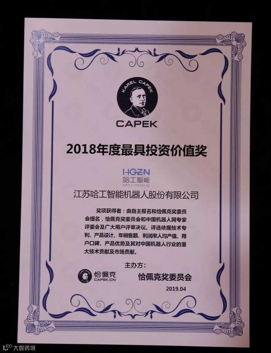 获得本次恰佩克奖,不仅代表了哈工智能在业内的影响力,而且代表了整个行业对哈工智能在过去一年的努力付出及未来发展潜力的强劲肯定。