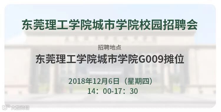 由东莞理工学院城市学院(后称“城市学院”)招生就业处、校友服务中心共同承办的城市学院毕业生校园招聘会将于12月6日举行。