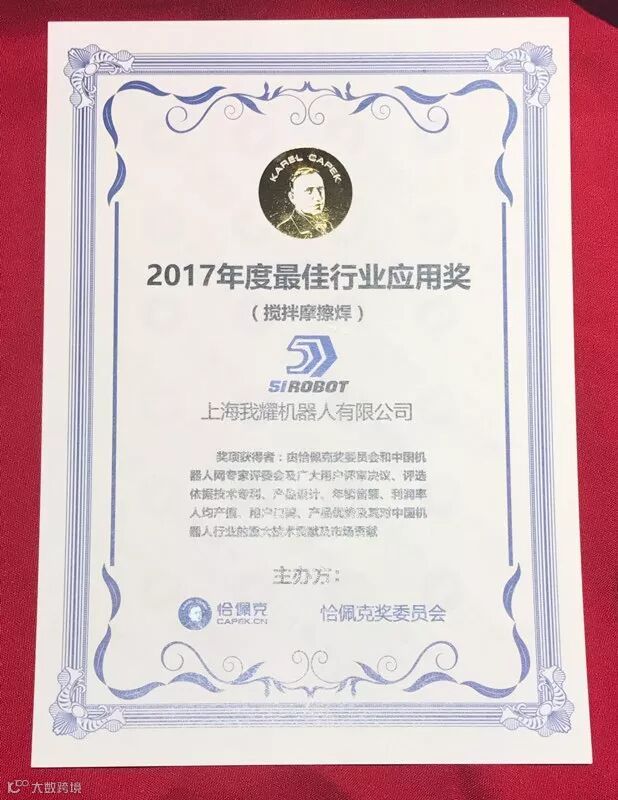 在本届恰佩克颁奖典礼上,哈工智能旗下全资子公司51ROBOT平台(上海我耀机器人有限公司)和天津福臻工业装备有限公司分别获得了奖项“最佳行业应用奖”和“汽车行业十大系统集成商”,总经理乔徽先生也获得了“杰出企业家”奖项。