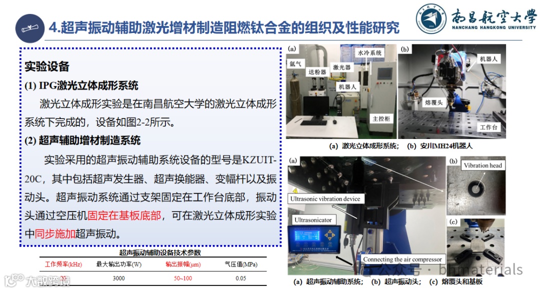 探讨了超声冲击技术如何辅助激光增材制造阻燃钛合金,包括超声冲击对组织和性能的影响,以及超声振动技术在细化晶粒、提高效率和节能性方面的应用。还讨论了超声振动技术在辅助激光增材制造阻燃钛合金方面的应用,包括对组织和性能的影响,以及如何通过超声振动技术提高材料的阻燃性能。