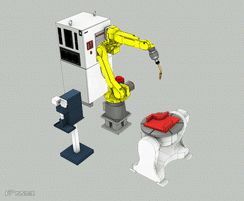 HRG机器人焊接工作站以自主研发六轴工业机器人本体,与独特设计的双轴T型变位机为主要特色,结构简便精巧,适用于各类金属工件的全位置焊接需求。
