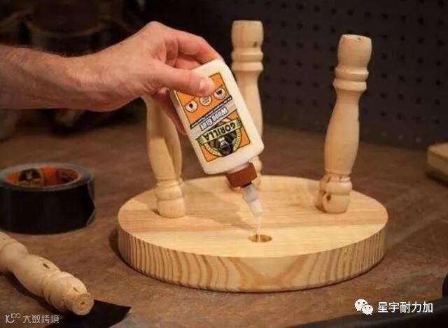 木工胶专门用于粘接各类室内木制品、家具;呈乳白色,未干时可用水清理,干后透明、无毒、不污染木材;可粘接各种粗拙木料、布料、纸类、皮革等材料(不能粘接MDF板)。