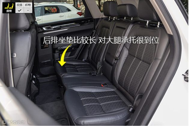 值得一提的是众泰T700主驾驶座椅便捷式的进出调整,在熄火时,座椅会自动往后退让,方便上下车;启动时,座椅也会智能回位,调整到最舒适的坐姿。怎么样,这个功能是不是十分走心呢?众泰T700的前排座椅功能也很厚实柔软,腰部两侧承托也不错,整体乘坐舒适性较好,座椅皮革还有打孔花纹。