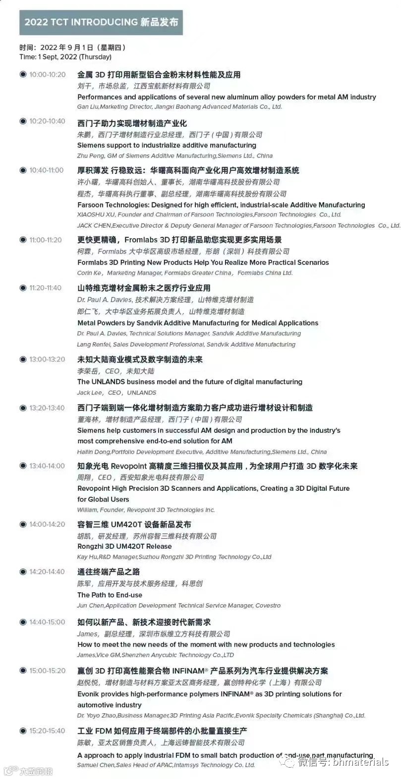TCT INTRODUCING是展商展示新产品的舞台,展商将通过TCT INTRODUCING在亚太地区首发最新产品,分享专业见解,带来创意与技术的碰撞。本次展会上,江西宝航市场总监刘干先生将带来《金属3D打印用新型铝合金粉末材料性能及应用/Performances and applications of several new aluminum alloy powders for metal AM industry》的主题演讲。演讲时间为2022年9月1日上午10:00-10:20,欢迎移步指导。