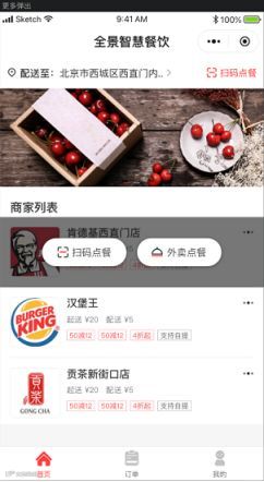 正因为桌椅是顾客公用的,所以对于美食广场的线上小程序来说,当用户扫描桌角二维码时,展现的应该是美食广场所有商家信息,然后再进行选择下单,商家可查看到用户订单以及订单桌位信息。