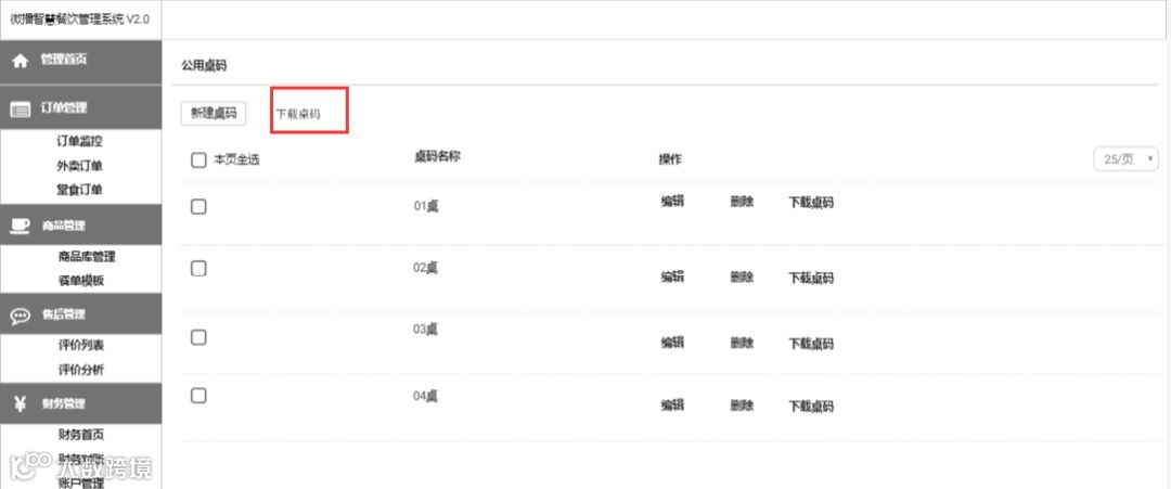 下载桌码为商户选择创建后的桌码然后点击下载桌码即可下载。