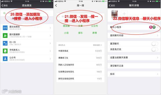 20. 入口:微信→添加朋友→搜索→进入小程序