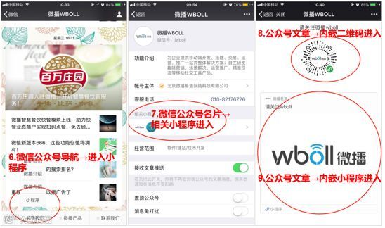 6. 入口:微信公众号导航→进入小程序(在公众号后台设置,即可展现)