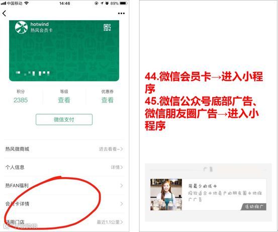 45. 入口:微信公众号底部广告、微信朋友圈广告→进入小程序
