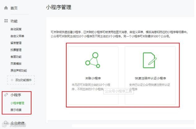 在公众号关联小程序的时候,会有两个选项:一个是关联后展示在公众号资料页,另一个是关联后给已关注公众号的用户发送通知,只要在关联的时候把这两个选项前打上勾,关联之后小程序就会自动展示在公众号首页,同时也会给用户发布关联小程序通知。