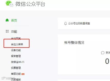 在微信公众号平台中,点击【自定义菜单】,设置公众号底部菜单。