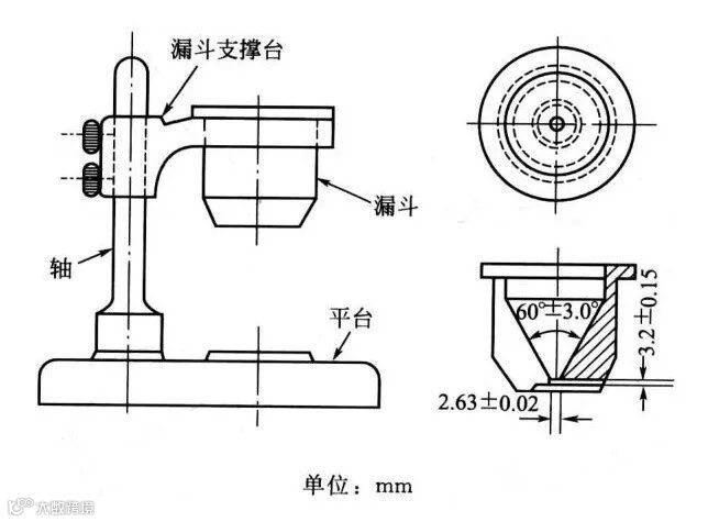 ②流速指单位时间内粉末由一定孔径的孔或管中流出的速度。其具体测定方法是在使用霍尔流速计,将粉体倒入细孔漏斗内,测定单位时间内流出的粉末量,即流速;也可通过测量固定质量的粉末流经细孔漏斗所用的时间来表征。一般粉末的流速快,流动性好,其流动的均匀性也较好。