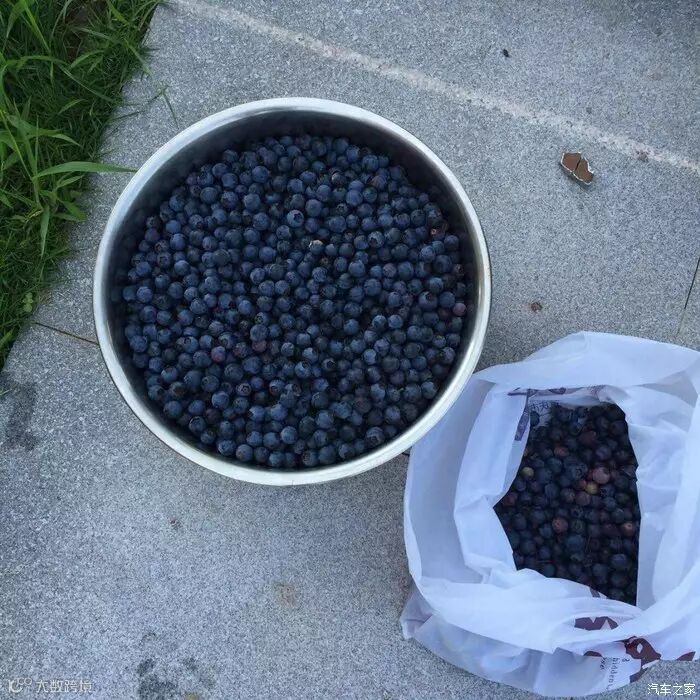 把新鲜采摘蓝莓打包装放入后备厢装整整两个口袋