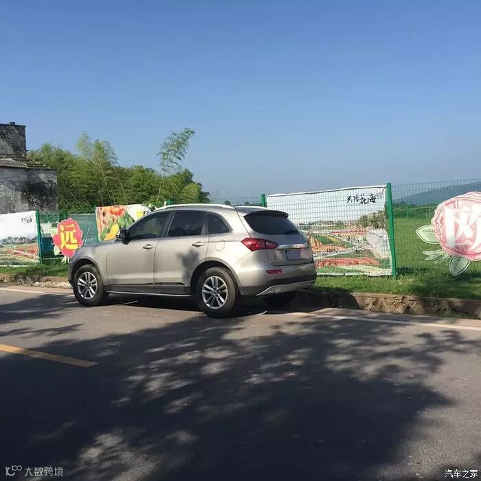 这周围没有专门停车场只把车停靠在路边但我有素质驾驶员自己停车同时尽量要影响交通所以可以看到车子已经尽可能靠边轮子都压到泥土里
