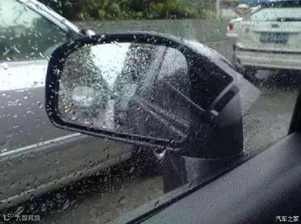 不管黑天还是白天,下雨天请把车灯都打开(除了远光灯)。为什么呢?请看下图,后视镜真的什么都看不到啊!