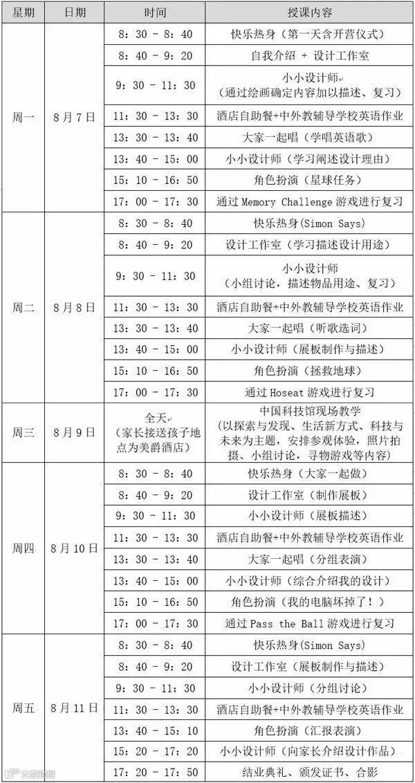 全程5天,每天9小时,从集合的那一刻起,遵循“进入教室里,全部用英语”的浸泡式原则。