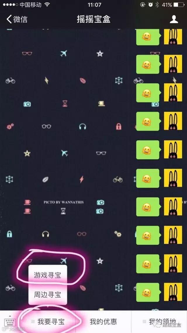 关注摇摇宝盒公众号-进入公众号-找到菜单-【周边寻宝】-【游戏寻宝】,玩游戏,领奖品,是不是超级简单!