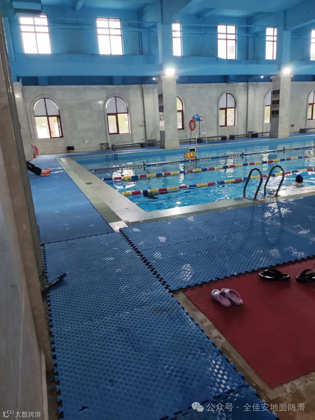 游泳馆是发生滑倒摔伤事故最多的地方,地面与水接触后很容易造成滑倒事故,后果很严重。