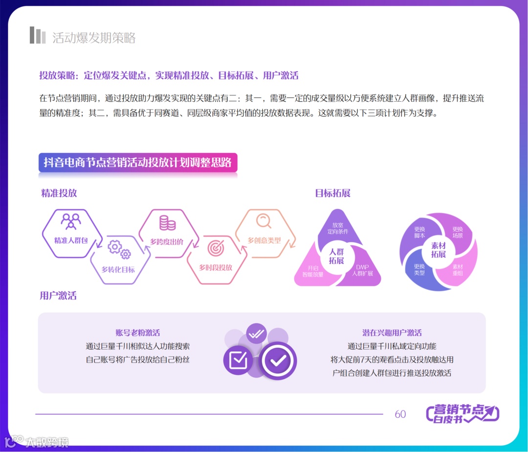 在活动爆发期,商家应以促销导向,敏捷优化;重点关注用户体验、直播优化、双擎联动和适时投放。
