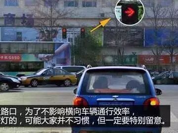 一般情况下,车辆右转是不用等信号灯的,但是一些流量较大的路口,为了不影响横向车流的通行效率,会在路口设置右转信号灯。这样的路口不多,但是大家习惯了右转不看灯的话,一遇到这种情况就会被杀个措手不及。因此我们在开车进入不太熟悉的路段时,一定要多加观察。