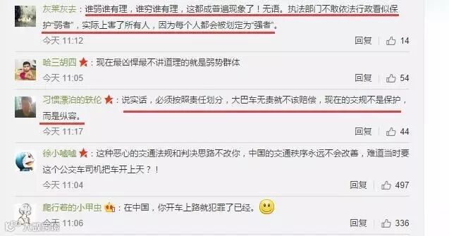 不少网友表示,因为即便无责,也要负10%的规则。给了很多行人、非机动车违章的底气!行人很好的利用驾驶员“怕出事”的心理作用,让自己在违章、违规中得到利益!这根本就做不到《道交法》中所谓的“交规面前,人人平等”!