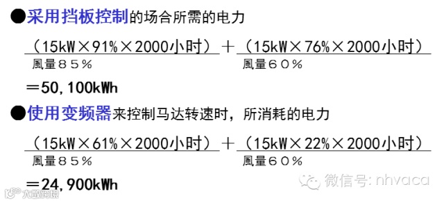 例:宾馆等场所中央空调系统的运行流量:85%:2000小时、60%:2000小时。合計4000小时/年、马达:15kW×1台。