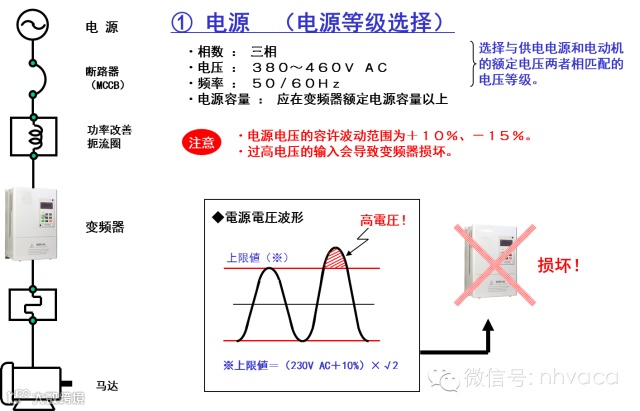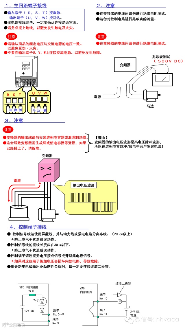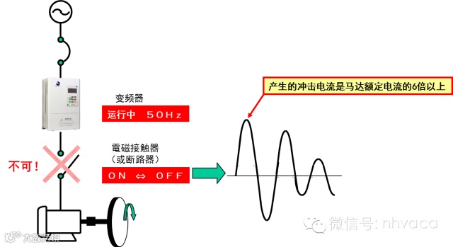 故障:电源投入时异常的电压波形会导致变频器内部的浪涌吸收元件(ZNR)损坏!