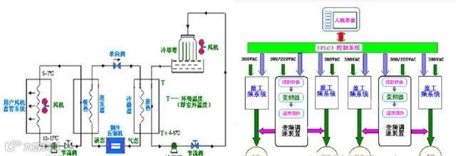 ●冷媒水回水温度改变水泵转速,调节税流量。