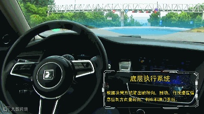 根据输出的转向、制动、行驶速度信息控制方向盘转向、刹车和油门系统,从而实现自动驾驶模式。