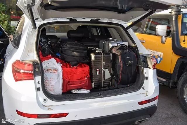 每辆车上坐4个人,都要带上全部的行李。我们这台车的行李厢里塞进了一个20寸登机箱、一个26寸托运箱、1个32寸托运箱、2个大号的相机包,还有一堆的杂物,空间依然还有富余。
