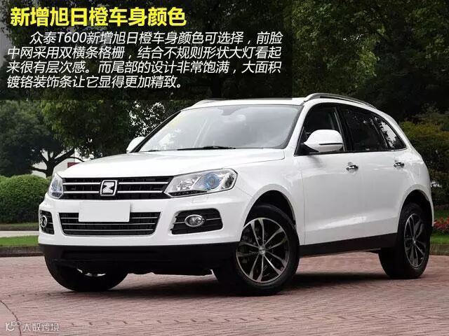 众泰T600新增旭日橙车身颜色可选择,前脸中网采用双横条格栅,结合不规则形状大灯看起来很有层次感。而尾部的设计非常饱满,大面积镀铬装饰条让它显得更加精致。